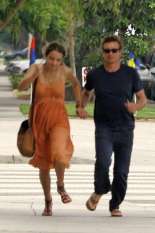 Simon Baker, with wife Rebecca Rigg, head to the Westside Pavilion mall for a matinee showing after meeting in the parking lot. Looking into each other's eyes and exchanging tender gestures, Baker and Rigg both get large popcorns and a bottle of water before heading to the cinema. Baker wears a black sweater, gray slacks, black shoes, and his trademark reading glasses. Rigg wears a loose blue shirt, jade necklace, jeans, and keeps her hair in a ponytail. Pictured: Simon Baker and Rebecca Rigg http://www.imagebam.com/gallery/89oi7g993k4qa9tragv84aol3atxmuhu |